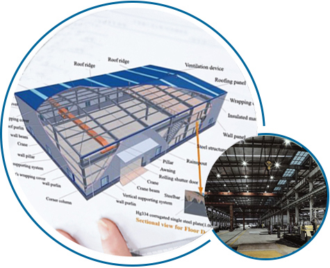 圍護系統:普通彩鋼單板,夾芯板,鋁鎂鋅單板,到各種復合夾心聚脂、巖綿、發泡板等圍護系統從材料到項目施工應有盡有。